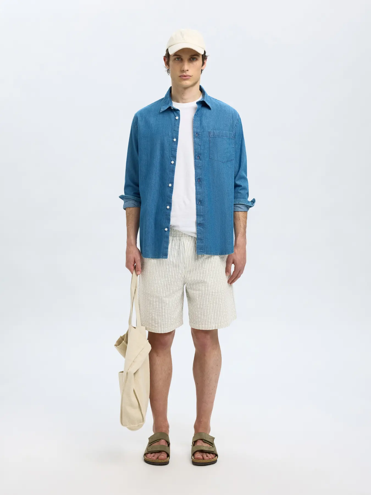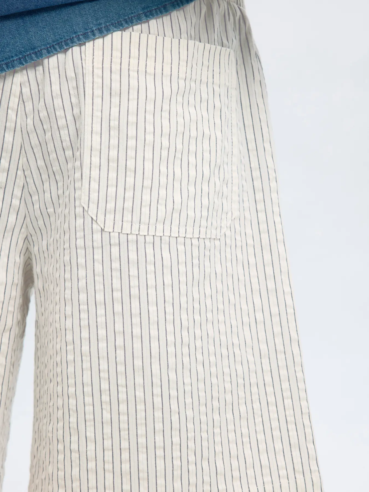 Bermuda con goma con rayas monocolor. De color blanco y rays en gris oscuro. Con dos bolsillos y uno en la parte posterior. Tejido fino, ligero y muy fresco. Tejido de buena calidad y fácil lavado. Fabricado con concepción ecológica y responsabilidad medioambiental. Tradición y vanguardia, unidas de la mano. Una prenda, eminentemente básica, pero que siempre te aportará máxima versatilidad y polivalencia en tus looks. Además no tiene fecha de caducidad y es un candidato perfecto para dar mayor profundidad a tu fondo de armario. Y con una magnífica relación calidad - precio. Acertarás con la compra! Estilo casualwear.