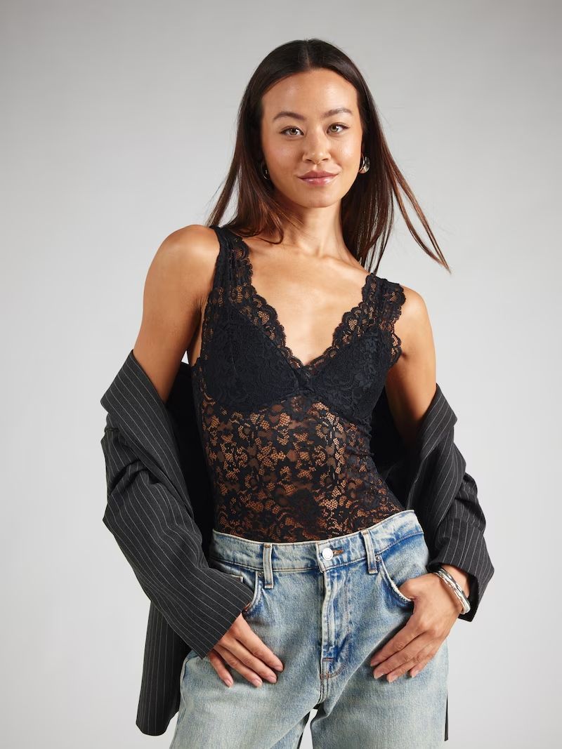 Body con tirantes y encaje Pieces Black