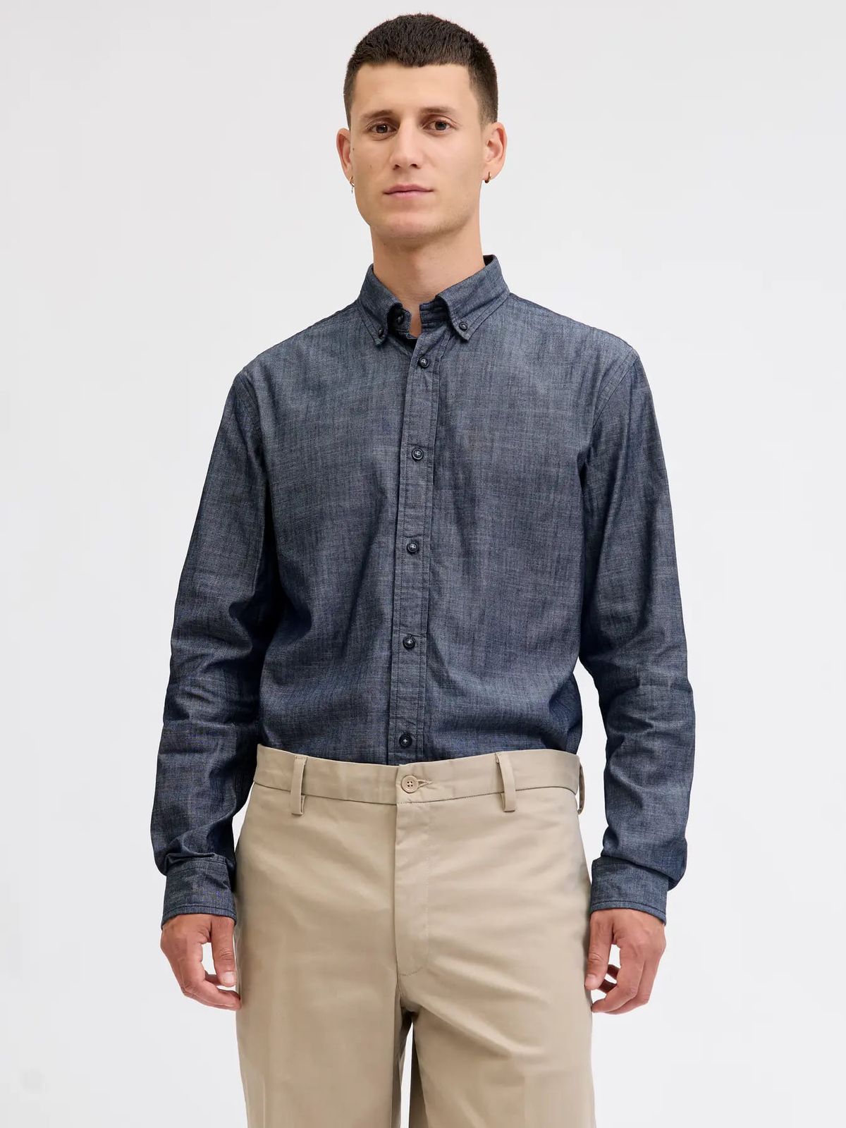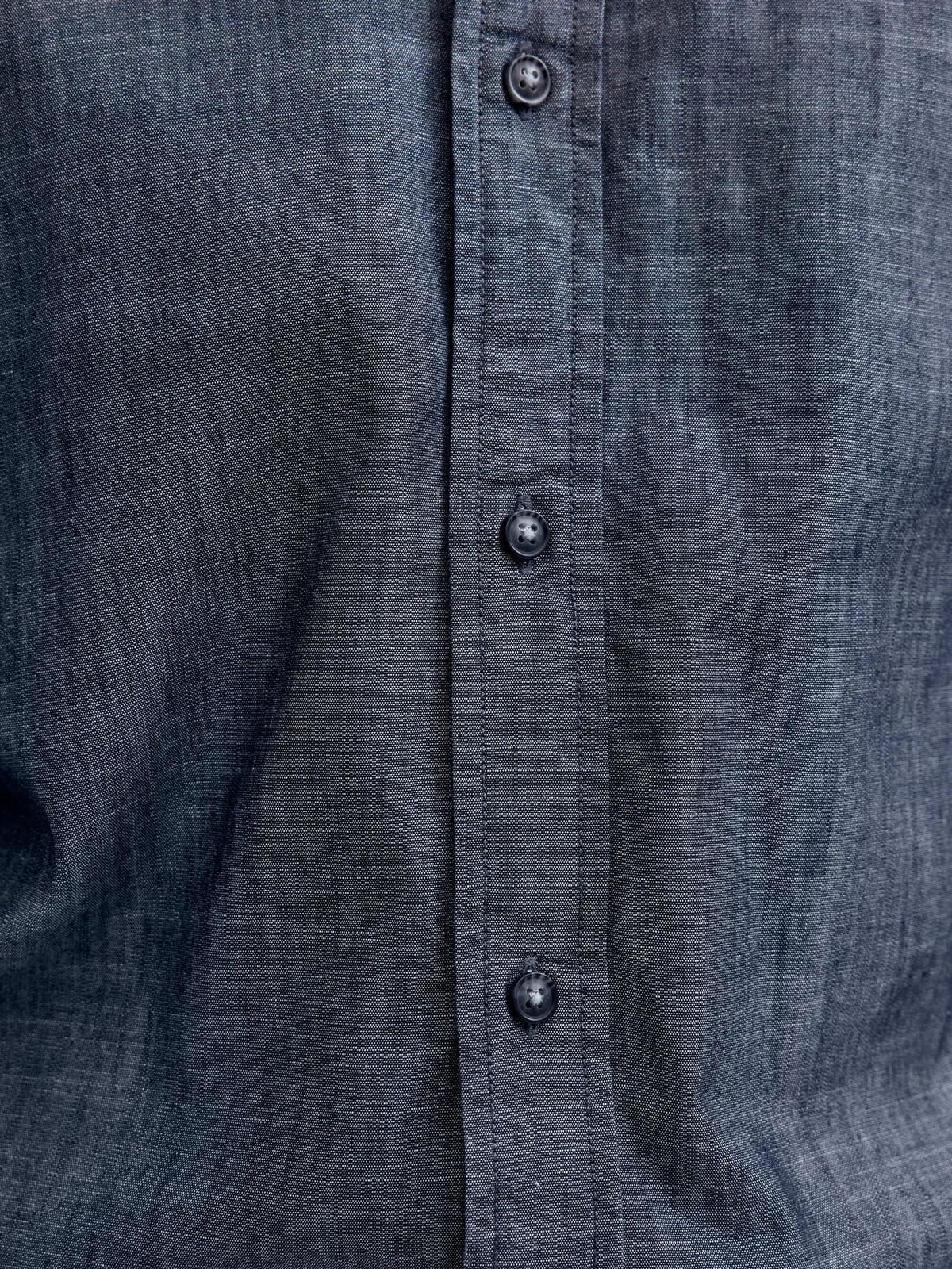 Camisa m/l chambay. De color azul oscuro. Con botonadura al tono. Con botones en el cuello. De patronaje entallado. Diseño de inspiración en los clásicas camisas vaqueras de los 80´s. Tejido ligero y fresco y de tacto suave y agradable. Tejido de buena calidad y fácil lavado. Fabricado con concepción ecológica y responsabilidad medio ambiental. Una camisa perfecta para combinar con una gran variedad de propuestas. Además no tiene fecha de caducidad y es un magnífico candidato para dar mayor profundidad a tu fondo de armario. Y con una relación calidad - precio excelente. Acertarás con la compra! Estilo casualwear.