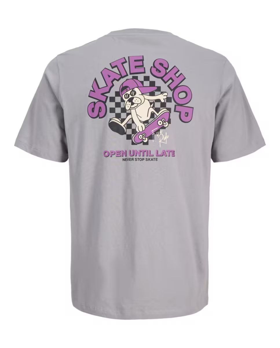 Camiseta m/c con backprint "Skate shop" Jack & Jones Grey