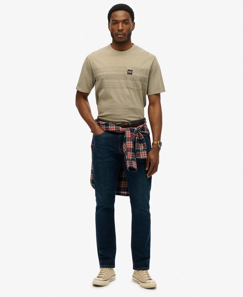 Camiseta m/c con bolsillo y rayas Superdry Washed Vintage Kakhi