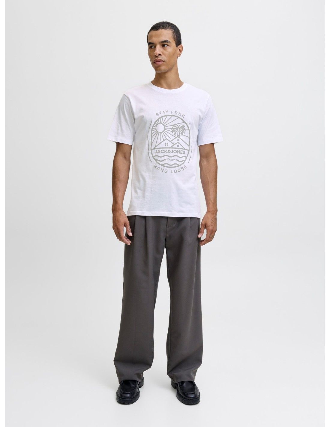 Camiseta m/c con print branding Jack & Jones White