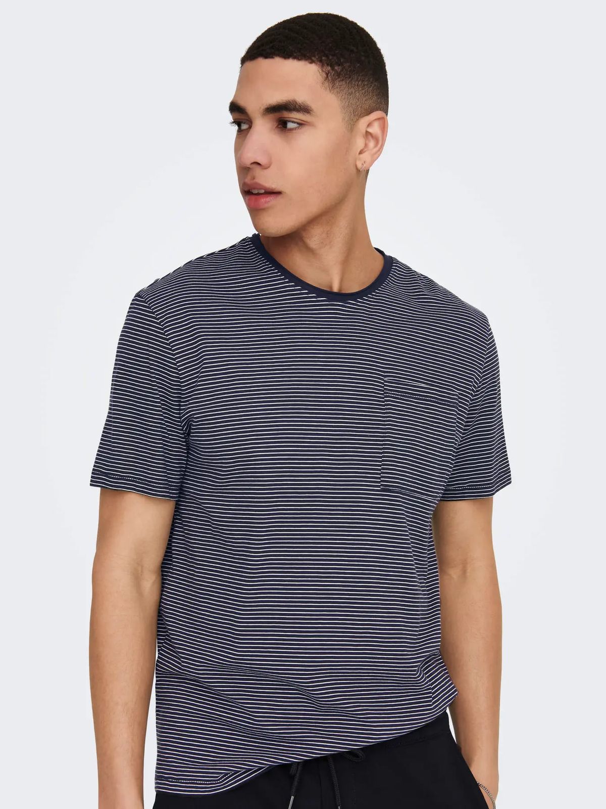 Camiseta m/c con rayas finas Only & Sons Dark Navy