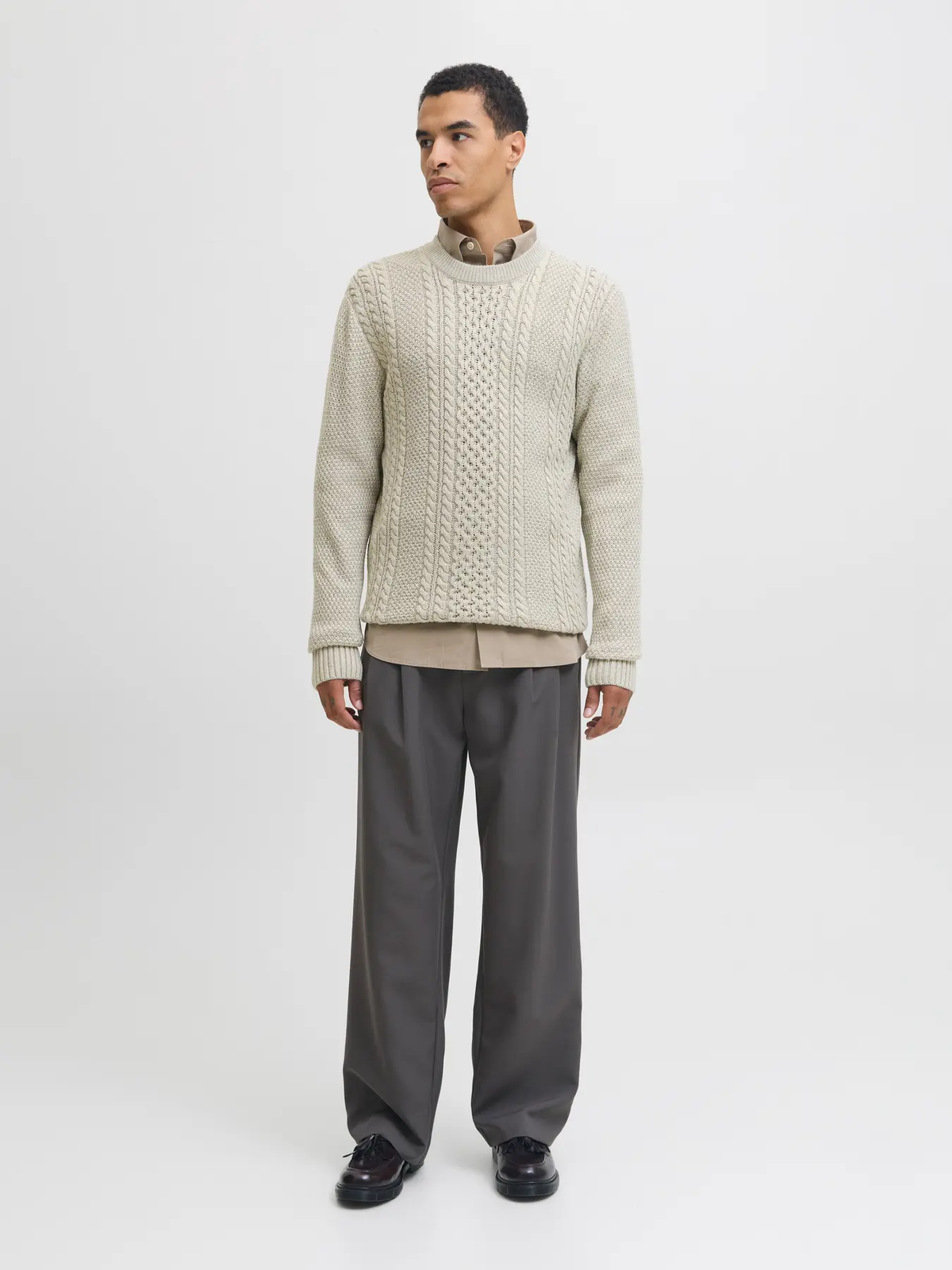Jersey de cuello redondo trenzas Jack & Jones White Melange