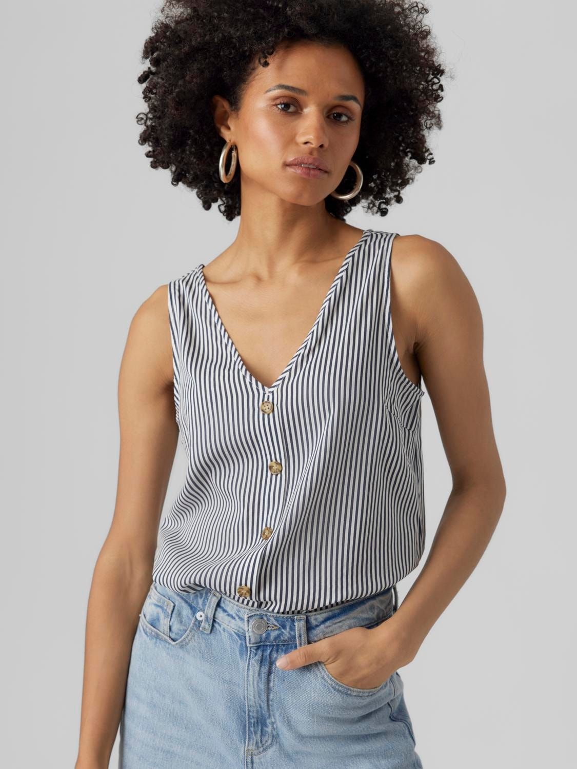 Top s/m abotonado con rayas verticales Vero Moda Snow White